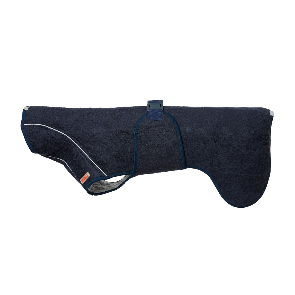 OBS: Lämna aldrig din hund utan uppsikt i ett torktäcke nära havet/sjön, eftersom dräkten kan suga upp så mycket vatten att hunden kan komma i fara om den går i vattnet med täcket på.
