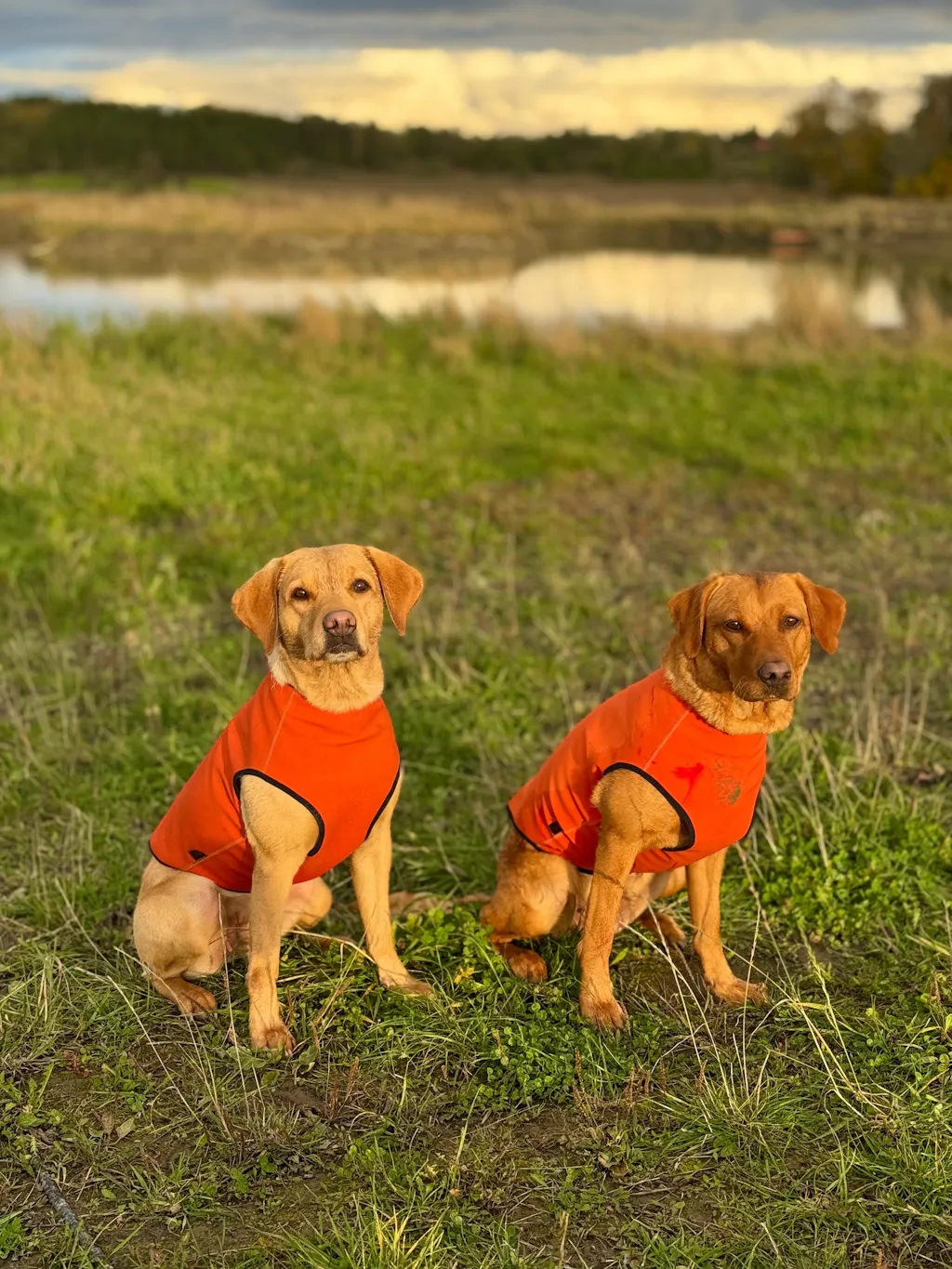 Köpte en väst till min vorstehtik som enligt måtten skulle ha stl 6 (slutsåld), chansade efter kontakt med kundtjänst på en stl 7. Västen i sig verkade smart, men jag insåg att en stl 6 även den skulle vara för bred mellan frambenen trots att min tik för rasen är bred över bringan och har rejält förbröst. Tyvärr retur (kostnad), men jag tror att man behöver kika på en specifik modell för hundar som är lättare byggda, som stående fågelhundar. Behovet för skyddsväst är stort även för dem, men denna modellen kommer att skava i armhålorna.